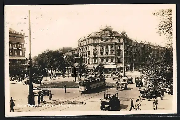 AK Berlin-Tiergarten, Potsdamer Platz mit Verkehrsturm, Strassenbahn vor dem Variete Wintergarten
