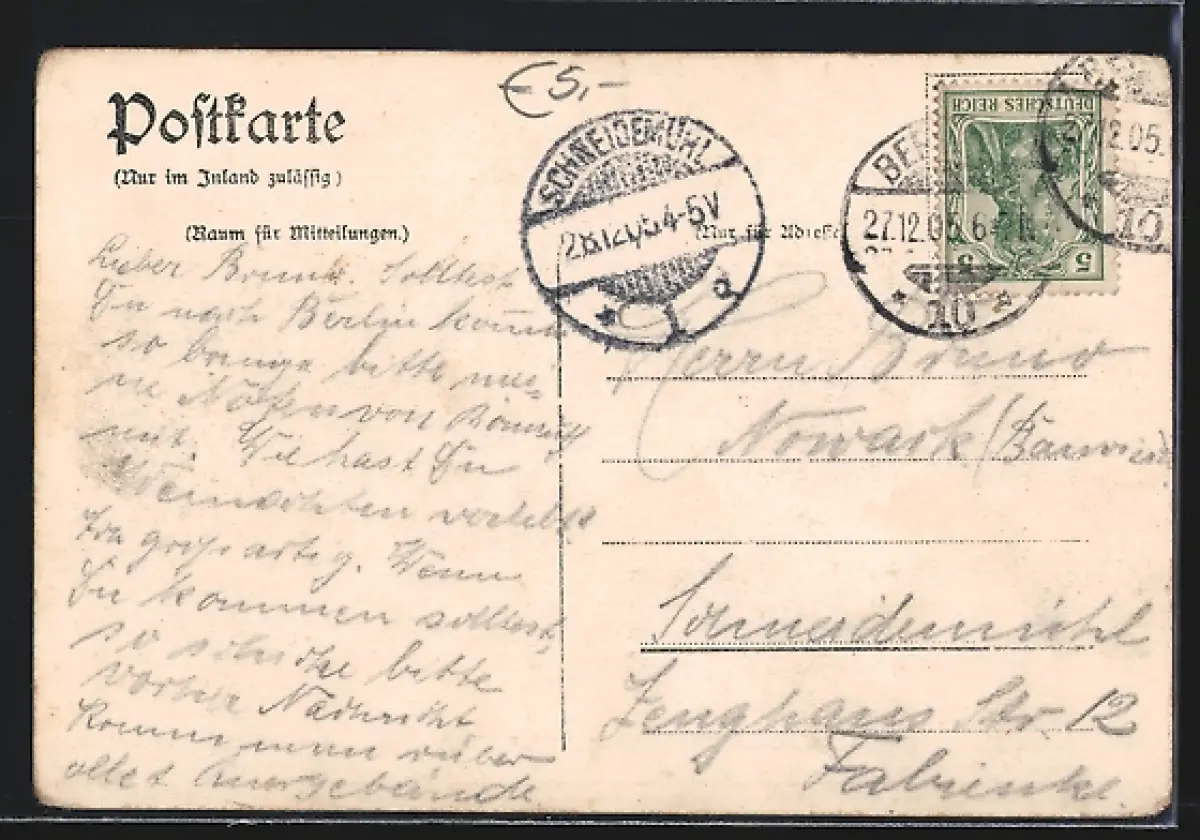 alte Ansichtskarte, gelaufen 1905, Stempelbugspur li. oben, guter Zustand