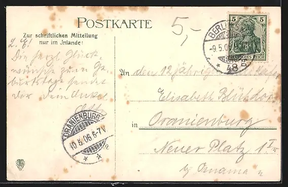 alte Ansichtskarte, gelaufen 1906, Eckknick re. unten, guter Zustand