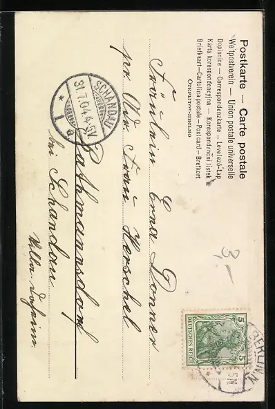 alte Ansichtskarte, gelaufen 1904, Eckknick unten rechts, guter Zustand