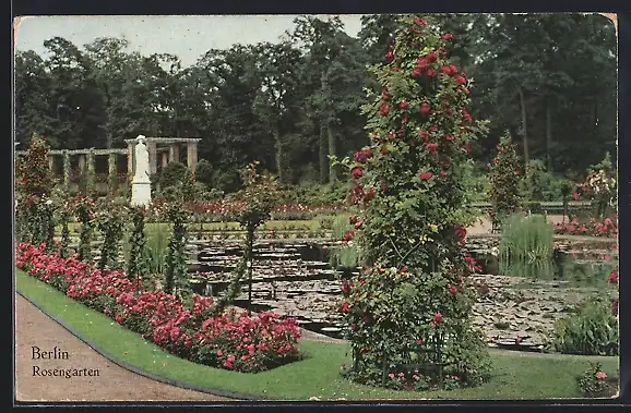 AK Berlin-Tiergarten, Rosengarten mit Statue
