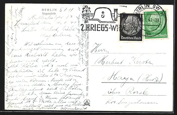 alte Ansichtskarte, gelaufen 1941, guter Zustand