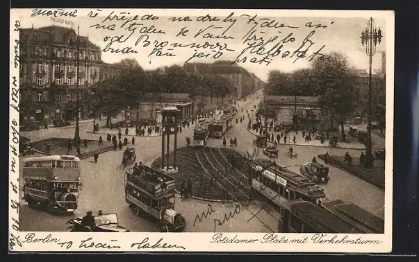 AK Berlin-Tiergarten, Strassenbahnen auf dem Potsdamer Platz