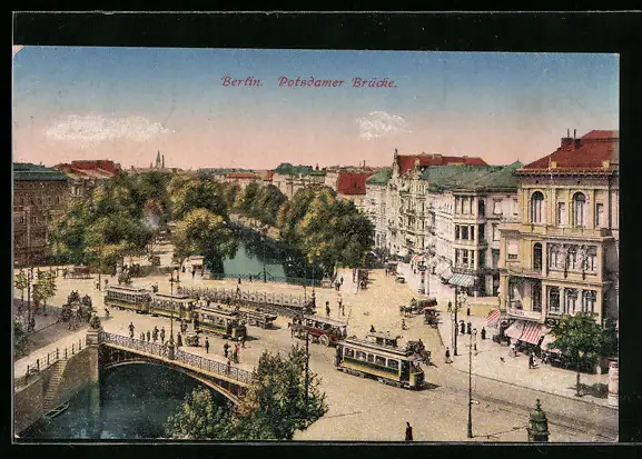 AK Berlin-Tiergarten, Strassenpartie mit Potsdamerbrücke und Strassenbahnen