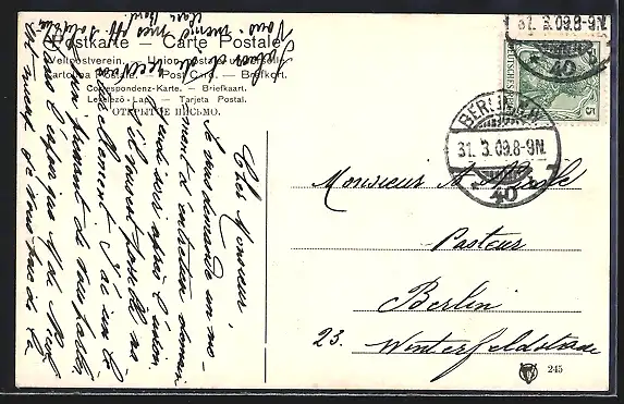 alte Ansichtskarte, gelaufen 1909, Stempelspur, guter Zustand