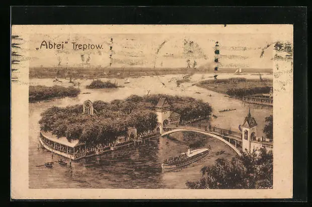 AK Berlin-Treptow, Abtei mit Brücke und Dampfer