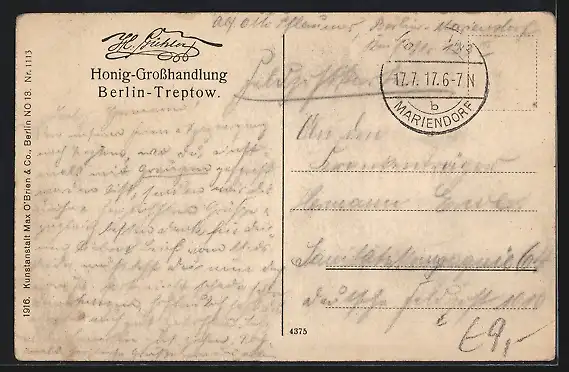 alte Ansichtskarte, gelaufen 1917, Stempelspur, guter Zustand