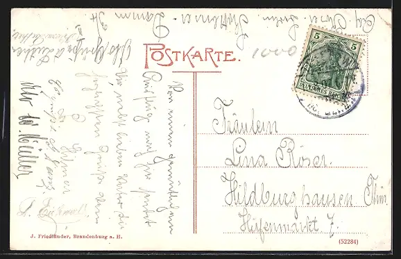 alte Ansichtskarte, gelaufen 1907, Eckknick li. oben, guter Zustand