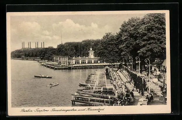 AK Berlin-Treptow, Gasthaus Paradiesgarten und Kaiserbad aus der Vogelschau