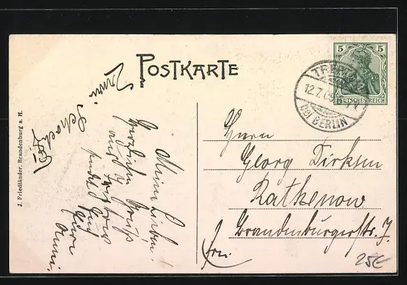 alte Ansichtskarte, gelaufen 1909, guter Zustand