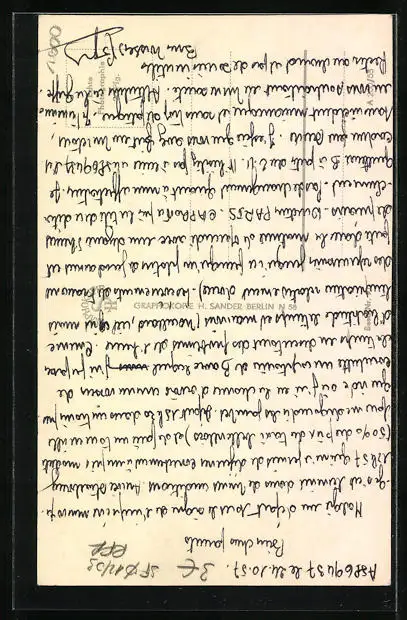 Personenbezogene Daten auf der Rückseite der Karte wurden durch blauen Textmarker unkenntlich gemacht. Die blauen Stellen sind auf die Vorderseite durchgeweicht und wirken sich negativ auf das Postkartenfoto aus