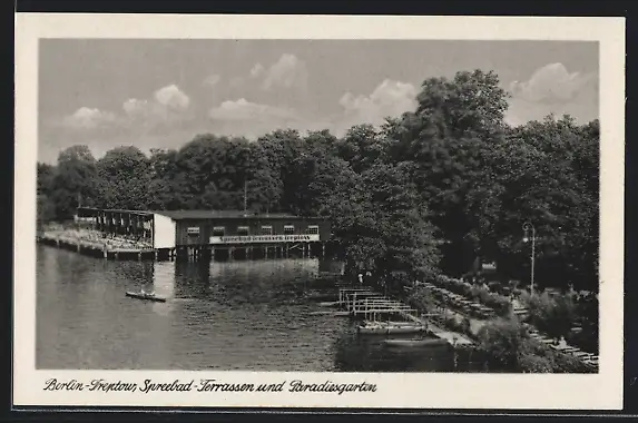 AK Berlin-Treptow, Spreebad-Terrassen und Paradiesgarten