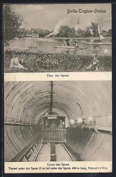 AK Berlin-Treptow-Stralau, Über der Spree und Tunnel unter der Spree
