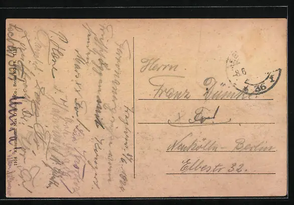 alte Ansichtskarte, gelaufen, Briefmarke entfernt, guter Zustand