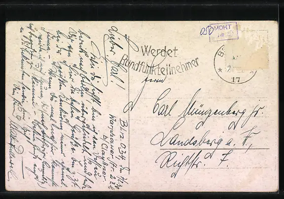 alte Ansichtskarte, gelaufen 1917, Briefmarke entfernt, rückseitig Oberflächenschaden, guter Zustand
