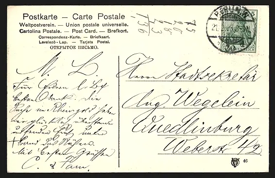 alte Ansichtskarte, gelaufen 1908, guter Zustand