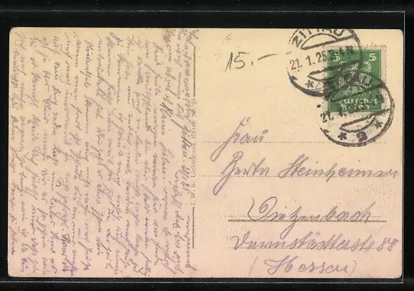 gelaufen 1925, Eckknick li. unten, Abriebspur re. unten, guter Zustand