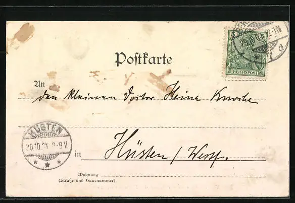 alte Ansichtskarte, gelaufen 1901, rückseitig Klebe- und Papierreste, guter Zustand
