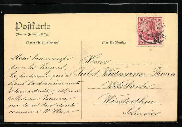 alte Ansichtskarte, gelaufen 1905, Eckknicke li., guter Zustand