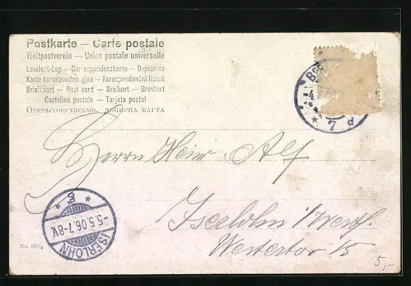 alte Ansichtskarte, gelaufen 1906, Briefmarke entfernt, guter Zustand