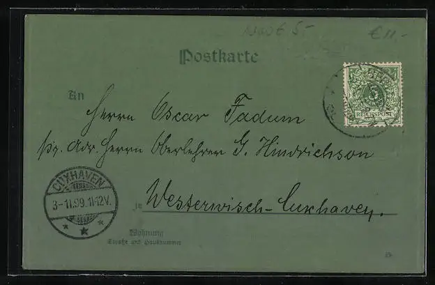 alte Ansichtskarte, gelaufen 1899, guter Zustand
