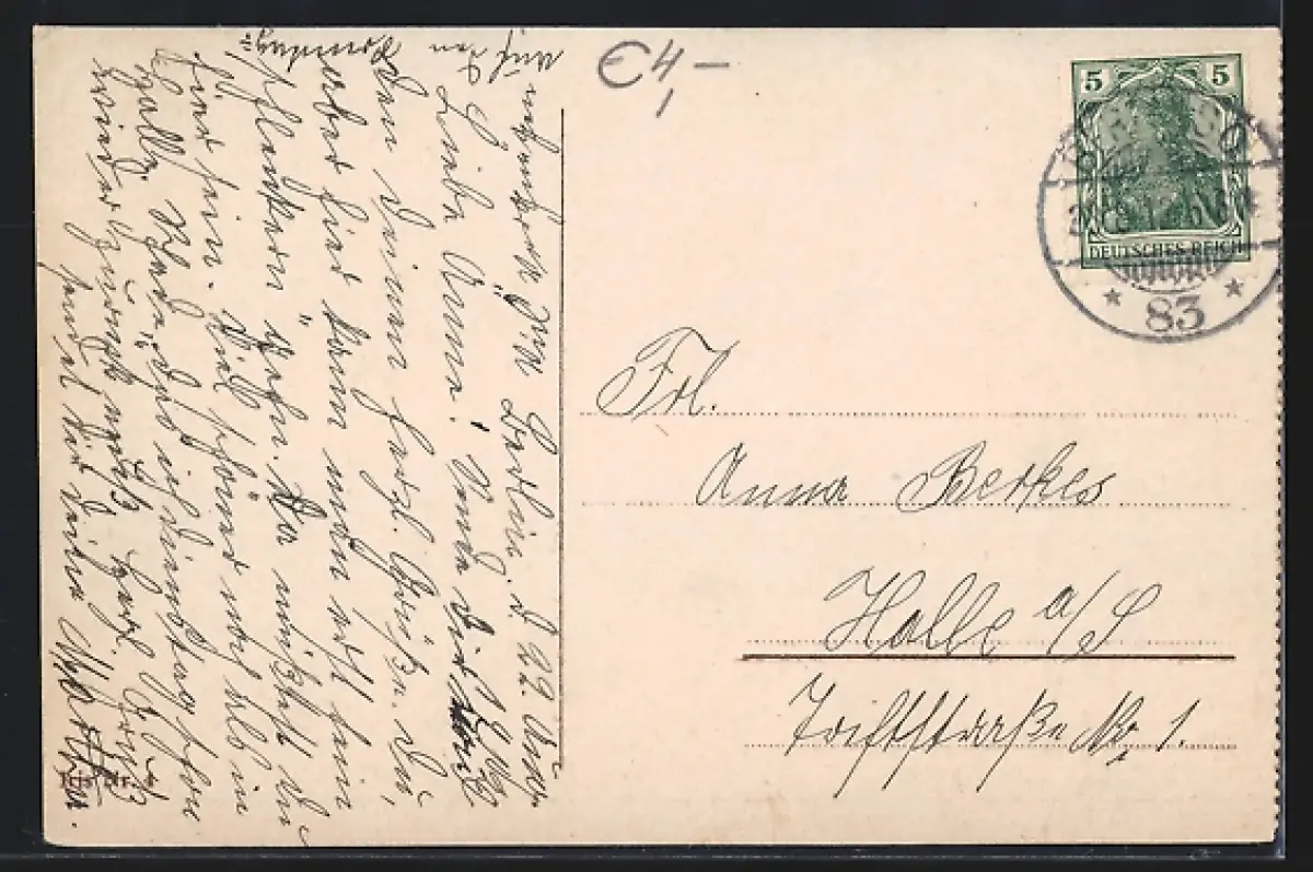 alte Ansichtskarte, gelaufen 1912, Abriebspuren oben u. unten li. u. mittig, guter Zustand