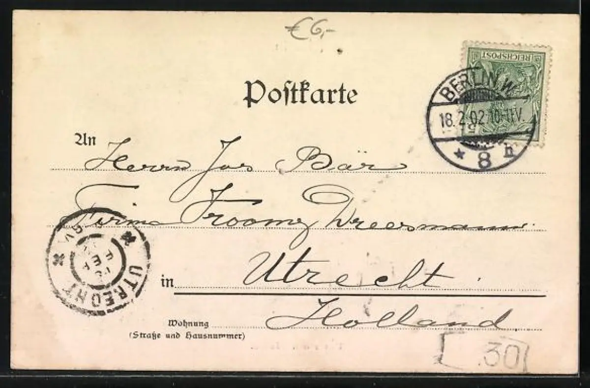 alte Ansichtskarte, gelaufen 1902, Stempelspur, guter Zustand