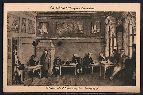 AK Berlin, Unter den Linden 30, Weingrosshandlung Gebr. Habel, Historisches Zimmer im Jahre 1810