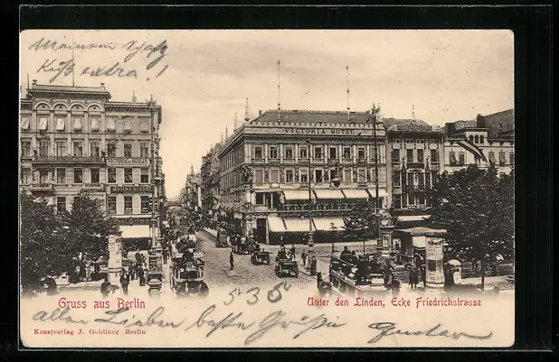 AK Berlin, Unter den Linden, Ecke Friedrichstr. mit Pferdebahn