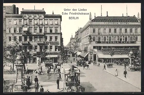 AK Berlin, Unter den Linden Ecke Friedrichstrasse, Victoria Café