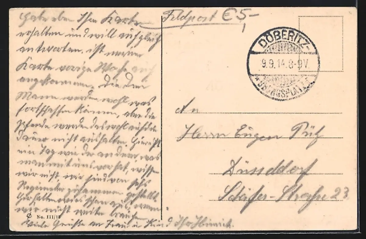 gelaufen 1914, Abriebspur oben rechts, guter Zustand