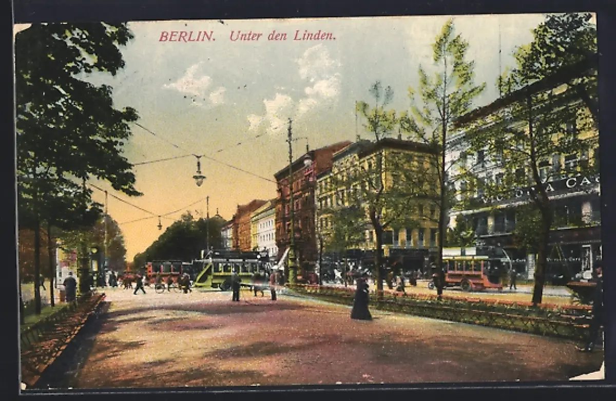 AK Berlin, Unter den Linden, Geschäftsgebäude, Strassenbahn, Passanten