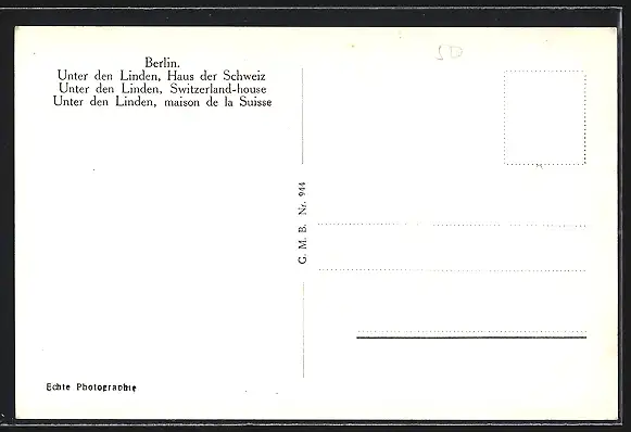 AK Berlin, Unter den Linden, Haus der Schweiz