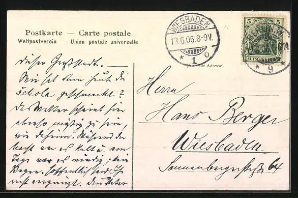 alte Ansichtskarte, gelaufen 1906, guter Zustand