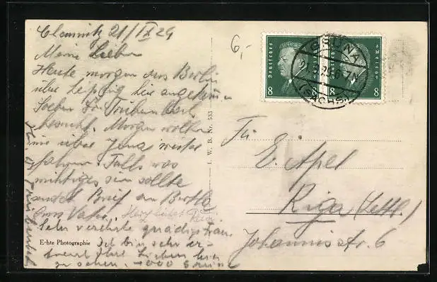 alte Ansichtskarte, gelaufen 1929, kleiner Eckschaden links unten, guter Zustand