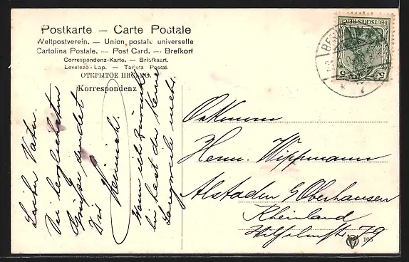 alte Ansichtskarte, gelaufen 1907, guter Zustand