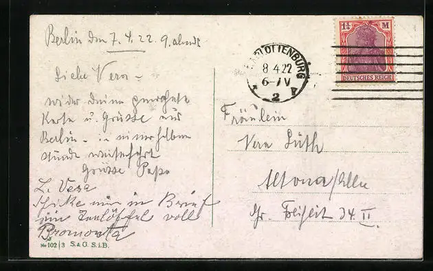 alte Ansichtskarte, gelaufen 1922, Eckknick li. oben, guter Zustand