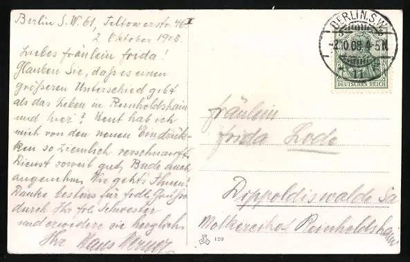 alte Ansichtskarte, gelaufen 1908, guter Zustand