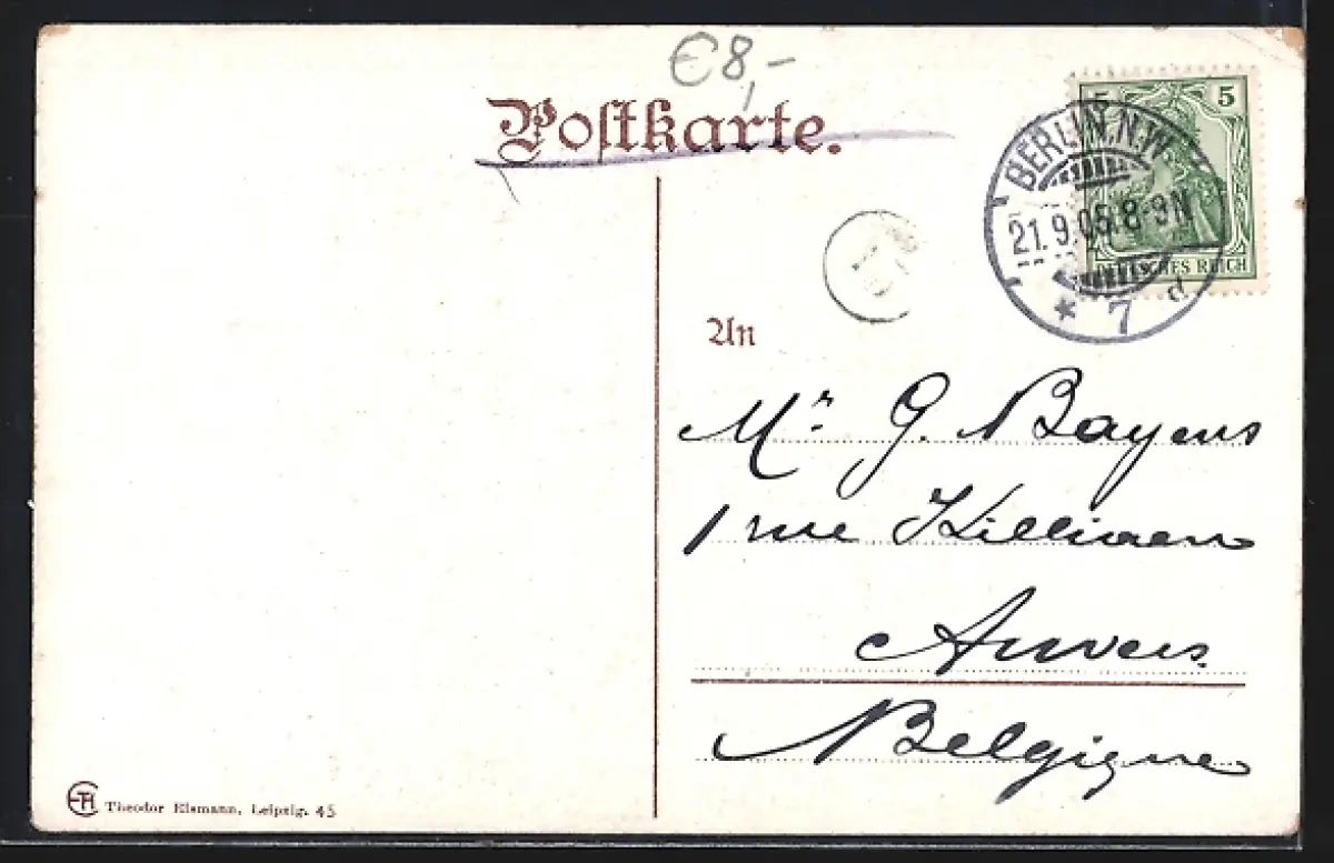 gelaufen 1905, Eckknick oben links, guter Zustand