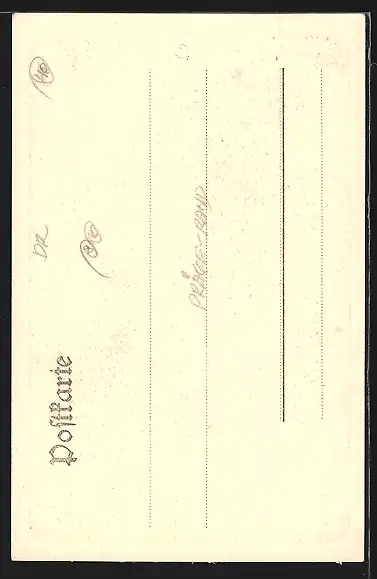 Personenbezogene Daten auf der Rückseite der Karte wurden durch blauen Textmarker unkenntlich gemacht. Die blauen Stellen sind auf die Vorderseite durchgeweicht und wirken sich negativ auf das Postkartenfoto aus
