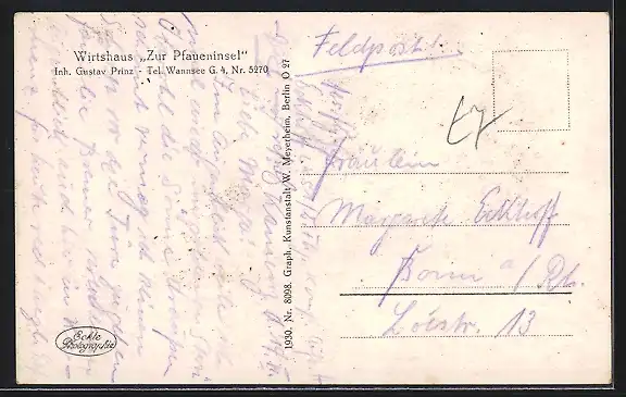 AK Berlin-Wannsee, Gasthaus zur Pfaueninsel an der Havel