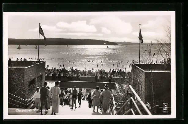 AK Berlin-Wannsee, Sonne über dem Strandbad