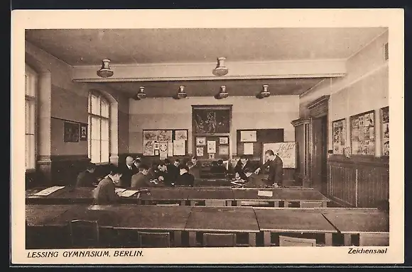 AK Berlin-Wedding, Lessing-Gymnasium, Zeichensaal, Innenansicht