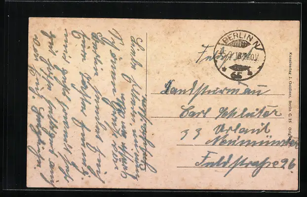 alte Ansichtskarte, gelaufen 1918, Abriebspuren oben u. Mitte, guter Zustand