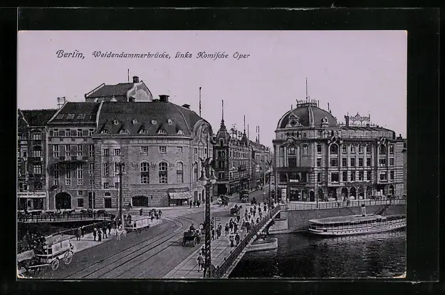 AK Berlin, Weidendammerbrücke, Komische Oper aus der Vogelschau, Dampfschiff
