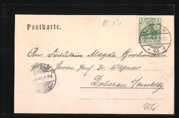 gelaufen 1905, minimaler Einriss li. unten, guter Zustand