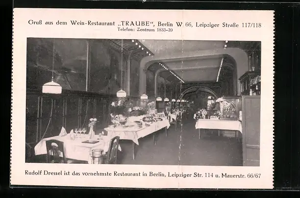 AK Berlin, Wein-Restaurant Traube, Leipziger Strasse 1117 /118, Innenansicht