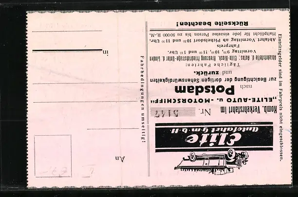 Personenbezogene Daten auf der Rückseite der Karte wurden durch blauen Textmarker unkenntlich gemacht. Die blauen Stellen sind auf die Vorderseite durchgeweicht und wirken sich negativ auf das Postkartenfoto aus