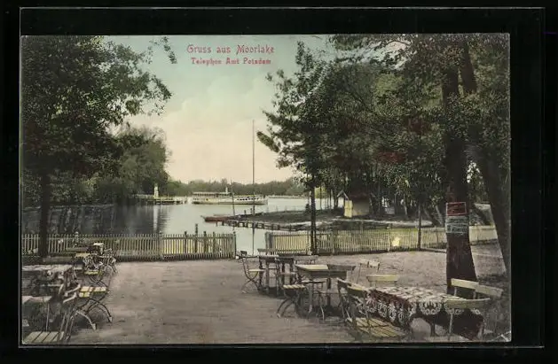 AK Berlin-Zehlendorf, Blick auf Restaurant-Café und See