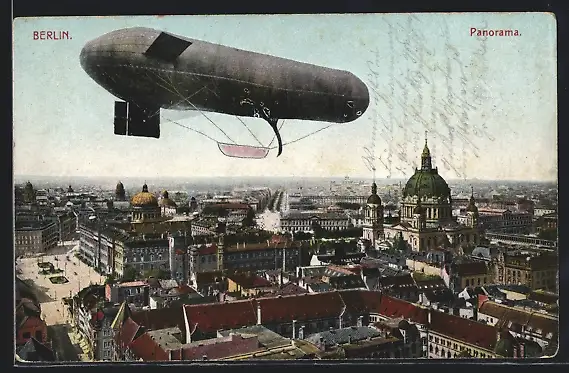 AK Berlin, Zeppelin mit Panorama der Hauptstadt